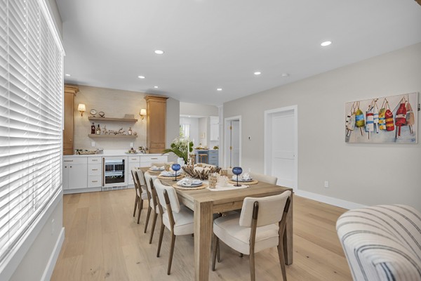 When these homeowners turned to Amiano & Son to remodel their entire home it was the perfect job for the company's lead designer Sophia Amiano. While still keeping the home's original bones intact, Amiano was able to reimagine each space by including several key features. Some of these updates included larger windows for better ocean views and shiplap on the ceiling blended with raw wood beams to add luxury while maintaining a coastal vibe. To further add unique character to the home, she also added focal points throughout like a wood tiled arch in the bathroom.