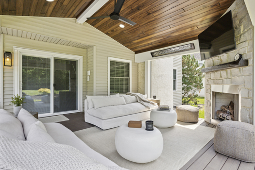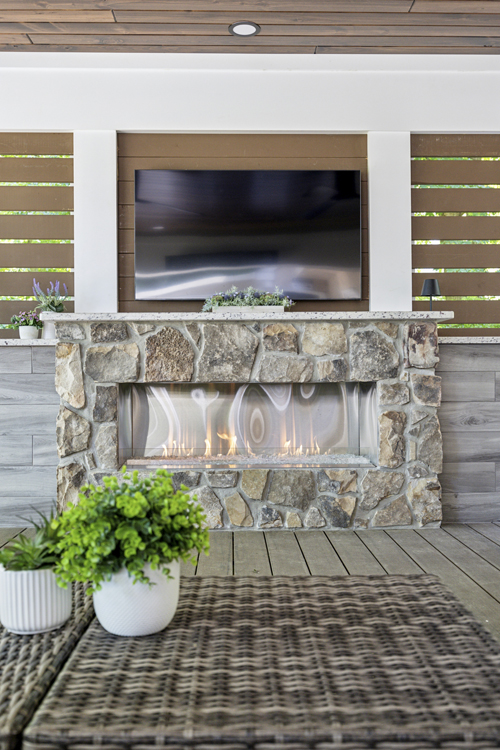 "Our showroom is where we host our client presentations, and it embodies the best of our outdoor living design features," Oakes says. "We welcome you to come and see the many materials, styles and fabrications utilized for decks, railings, porches, firepits, fireplaces, roof structures, awnings and outdoor feature walls up close and personal – essentially, anything outdoor living is what you'll find when you visit us. We are the go-to experts for all your outdoor living needs. Our showroom is where you can envision how you can incorporate the latest style trends in your new outdoor living space. Our outdoor