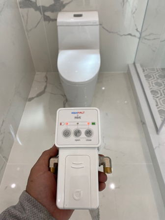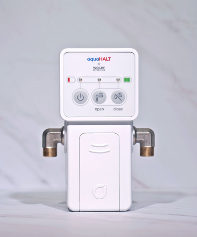 Alternatively, aquaHALT – recently named one of TIME's Best Inventions for 2023 – is battery-operated just like other detectors in your home. This ensures reliability, as it requires neither electricity nor a Wi-Fi connection. In addition, aquaHALT will do more than send you an alert: Once a leak is detected, aquaHALT will automatically shut off the water locally to stop the leak while allowing your household to continue to use other water sources—minimizing the inconvenience. The device will beep to alert you to the problem until it is physically reset.