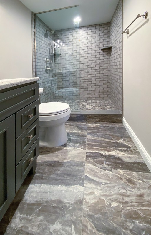 Porcelain tile can also have a wood-look, which is extremely popular now. "The industry has come pretty far in how authentic the wood grains and patterns look on the porcelain tile. It's like having hardwood without the maintenance," Cerami adds. "Even in that area, there are various aesthetics, such as farmhouse or contemporary and everything in between. It takes an expert to know the difference in the styles."