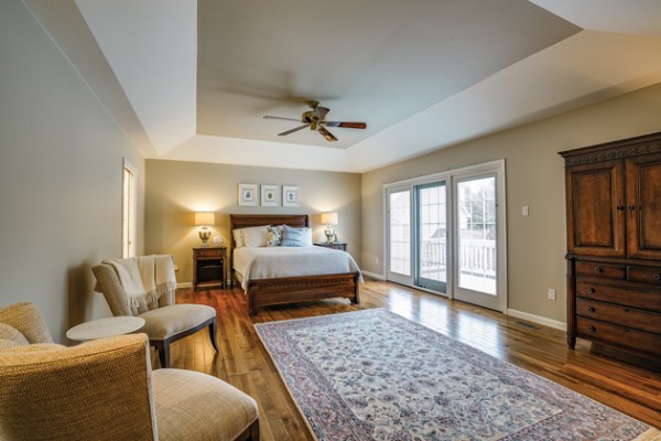 Besides adding the third bathroom and the walk-in closet, complete with a three-way mirror, the project involved the master bathroom, the hallway bathroom, and the master bedroom. Gehman's team installed hardwood floors throughout the upstairs, updated the tile flooring in the existing bathrooms, and replaced a nine-foot-wide patio door off the master bedroom, which necessitated the use of a crane.