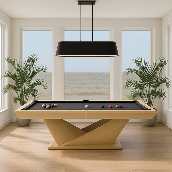 "All of our tables, whether shuffleboard or pool table, come in so many different wood species and finishes," DelConte says. "Often, a Shore home will do a lighter finish or a gray finish. There are all different variants of colors available, and different sizes for different room measurements.