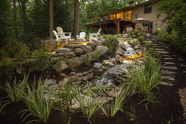 "We call it living the lifestyle… even when you're inside and you look outside, you always see a water feature. That's your focal point. That's where people are going to gather. That's where the conversations are going to happen if you have seats by it. And I can tell you that a fire pit will usually be by a water feature, because it's soothing, it's relaxing," says Mihalchick.
