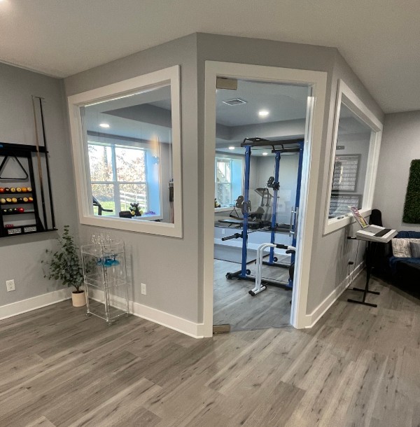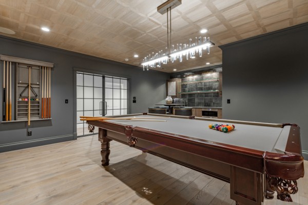 “I feel like the whole family’s getting involved downstairs; there isn’t just a kid area or an adult area anymore,” he explains. “We’ve recently just done [a project] that had a home gym with a big, glass door and panels, so it still feels open with a lot of natural light. It had a kitchenette, plenty of space for entertaining and counter space. It hit on everything: It had that family living space to hang out, it had the pool table area, it had an area for the kids and their games.”
