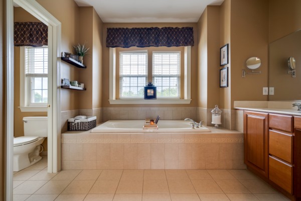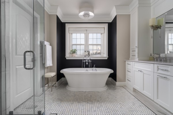 This Lumberton, N.J. bathroom was remodeled with custom carpentry and molding, creating a luxurious retreat. The large soaking tub, paired with stunning detailed tile, truly ties the entire space together for a completely different look than before.