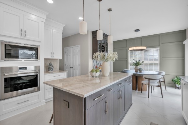 As a lead designer for Amiano & Son, Sophia Amiano is well-versed in how to create a homeowner's dream kitchen. Here she worked to maximize the current space by creating an open-floor layout to breathe new life into the space, blending the husband's desire for a Scandinavian look with his wife's more traditional leanings. Amiano created a beautiful two-tier, two-toned waterfall effect with the kitchen countertop, utilizing different textures of matte and glossy finishes to create a unique feel of luxury.