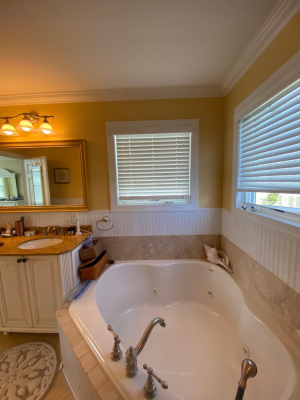 This Lumberton, N.J. bathroom was remodeled with custom carpentry and molding, creating a luxurious retreat. The large soaking tub, paired with stunning detailed tile, truly ties the entire space together for a completely different look than before.