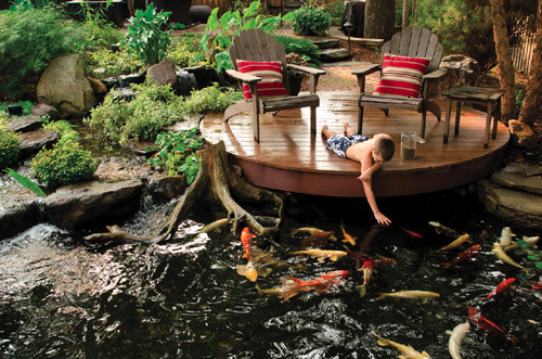 “A beautiful pond boasting a dramatic waterfall, perhaps a babbling brook, lighting and select koi is an awesome investment that will significantly increase the value of one’s property,” Marrazzo says. “The trickling sounds may drown out environmental sounds, thus calming the mind. To come home from a long day of work or school to a water feature helps support a relaxing mental state.”